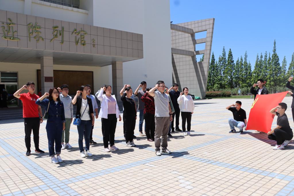 在陈列馆内,师生们跟随工作人员的讲解,通过照片、影视资料深入学习了解“两弹一星”元勋郭永怀同志的生平事迹。郭永怀同志在祖国最需要他的时候,抛弃国外优渥的待遇、舒适的生活、良好的科研工作环境毅然回国,在罗布泊的戈壁滩上挥洒自己的青春和热血。当讲到郭永怀同志为了保护重要实验数据,在飞机上失事的那一刻与自己的警卫员紧紧相拥,两具烧焦的遗体中间是完好无损的公文包的时候,在场的师生无一不潸然泪下,被郭永怀同志无私奉献、以身许国的伟大精神所感染。郭永怀同志和其夫人李佩同志的伉俪之情也深深的触动了大家。在参观完陈列馆后,所有党员同志面对党旗庄严宣誓,重温入党誓词,坚定理想信念,向郭永怀同志学习。