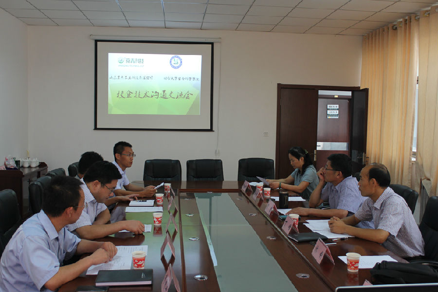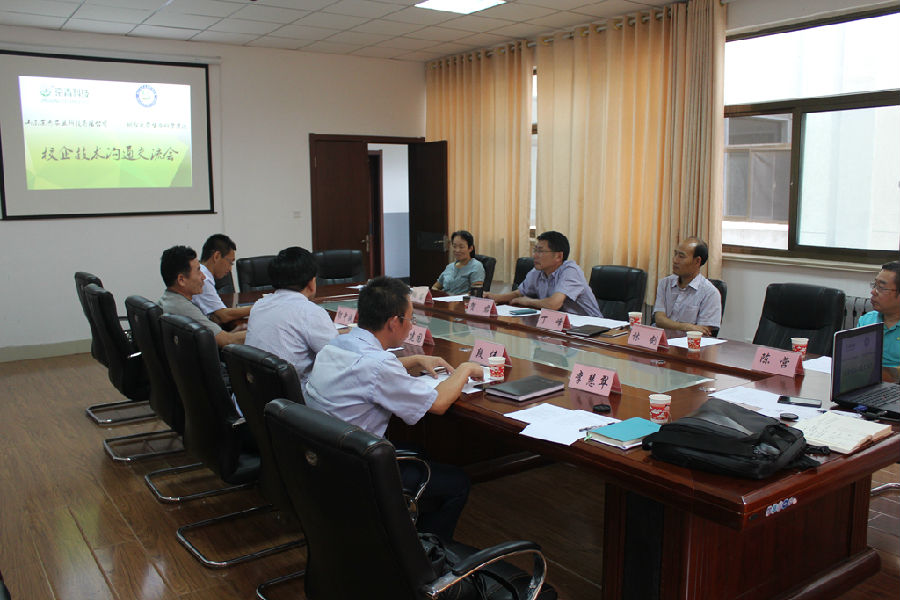 9月10日上午,由青州市何官镇党委书记曹建国带队,山东京青农业科技有限公司总经理郭中成及生产总监、研发部经理等共6人来到公司,与公司微生物专家商谈校企技术合作事宜,公司党总支书记丁峰、副经理贺君、林剑及相关专业教师出席了此次交流会。双方就科技合作、技术交流达成共识,并初步形成合作意向。