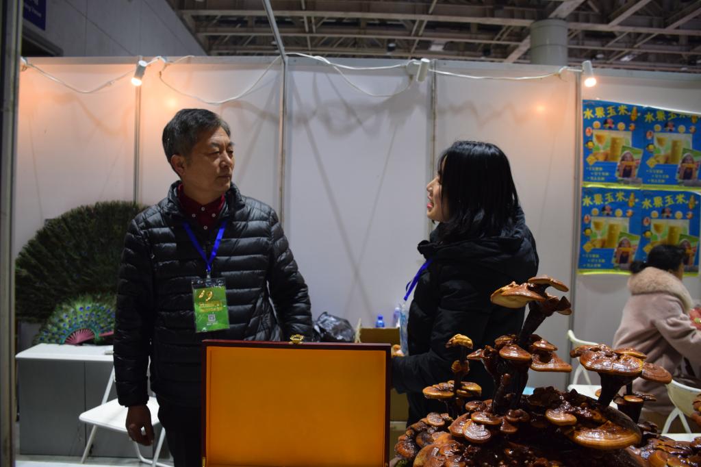 董老师带领员工参加的交易会主要包括果菜茶产品的售卖、灵芝药酒的观赏及出售、中国农业技术协会人员与公司老师及员工交流经验三部分。活动过程中,公司员工在摊位上摆放了各式各样的果菜茶产品和灵芝药酒,消费者边观看边选择自己心仪的产品。其中,灵芝药酒当属最吸引人的产品,许多消费者慕名而来,公司员工则在一旁为消费者介绍灵芝的种植方法和食用性及观赏性,并为有意向购买或合作者搭建与公司交流的桥梁。董老师向员工们讲述了自己员工时代的故事,用亲身经历激励有创业想法的老员工,鼓励他们大胆实践,将理论知识运用到实际的生产当中。3月17日,公司领导与企业负责人莅临现场,双方进行充分交流。最后,全体参与人员在展厅门口拍照留念,至此,本次交易会圆满结束。