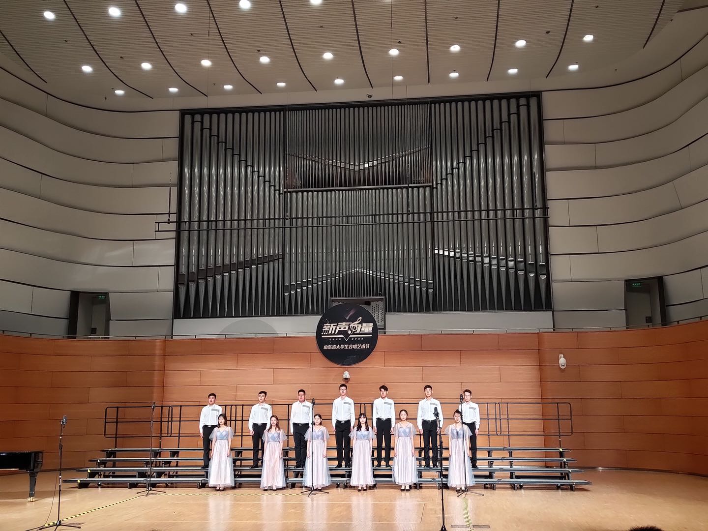 齐鲁育美,悦动中华,为庆祝中华人民共和国成立70周年,唱响爱党、爱国、爱社会主义的时代主旋律,由山东省教育厅主办的2019年“新声力量”山东省老员工合唱艺术节决赛于12月2日—12月4日在青岛大剧院举行。经历了来自各大高校的近160支团队的激烈角逐,公海gh555000aa线路检测天空合唱团(非专业组)成功晋级30强,凭借一曲《我喜欢》获非专业组二等奖。
