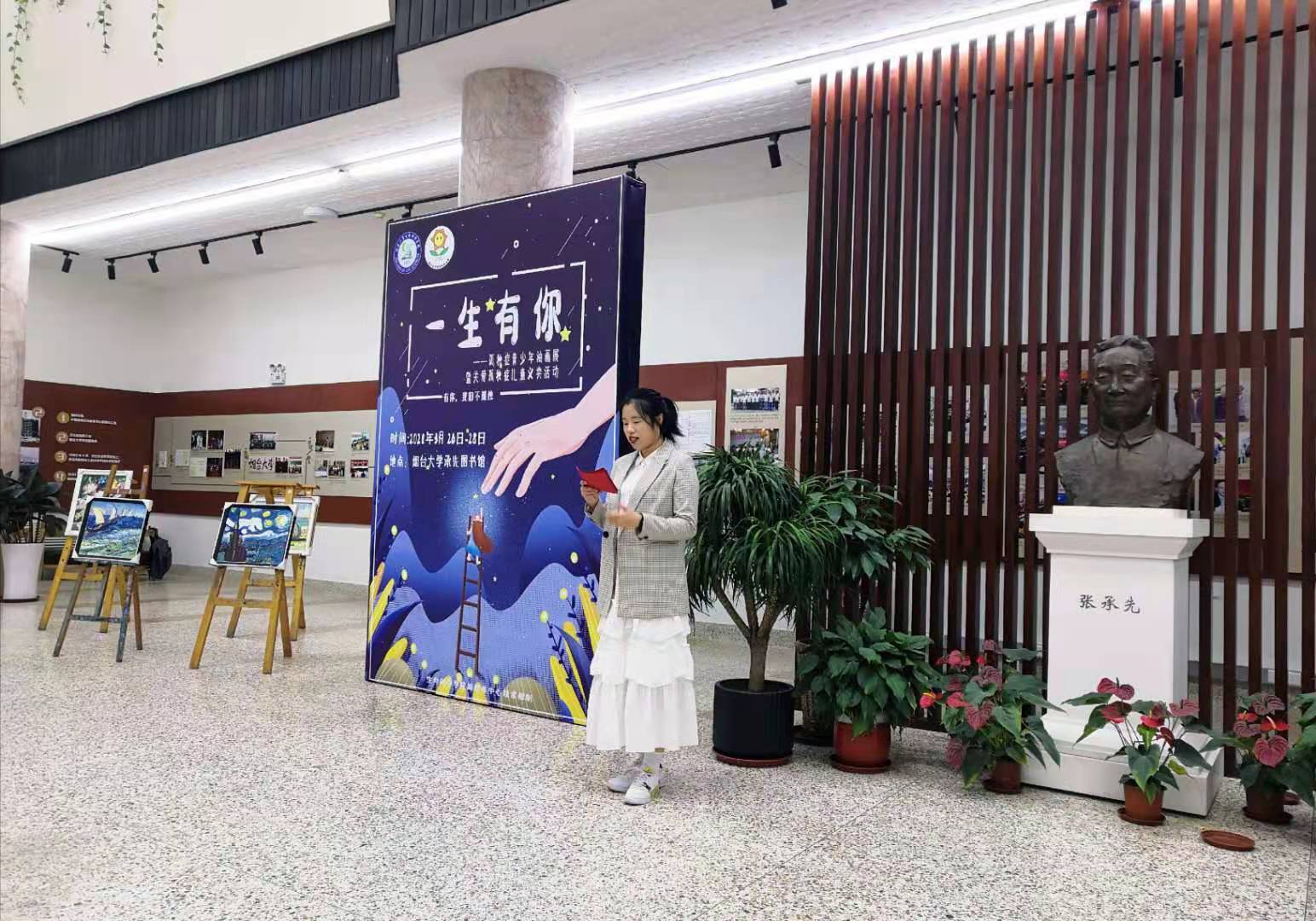 阳春时节,万物生辉,沐着和煦的烟园晨光,在第14个世界自闭症来临之际,三元湖畔静谧的承先图书馆化身成艺术展馆,3月26日,公海gh555000aa线路检测“梦田花房”公益组织和扬帆助学中心共同举办的孤独症青少年油画展暨孤独症儿童手工作品义卖活动启幕。出席活动的嘉宾有烟台市扬帆助学发展中心理事长薛志伟、烟台广播电视台《网红现场秀》主持人天月、曾入展2019年欧盟驻中国大使台历的自闭症青少年油画作者王嘉仪及其母亲等。公司党总支书记张仁旭致辞。