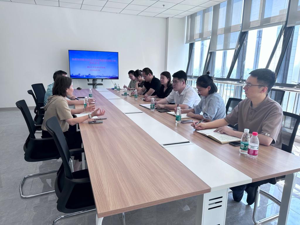 9月7日上午,烟台业达经济发展集团有限公司副总经理潘志栋、山东产业技术研究院(烟台)投资管理部经理刘翠等一行来到八角湾校区公海gh555000aa线路检测交流座谈,公海gh555000aa线路检测经理孙利芹及相关学科负责人参加座谈,就产教融合、人才招引、成果转化、校企合作等展开交流座谈。