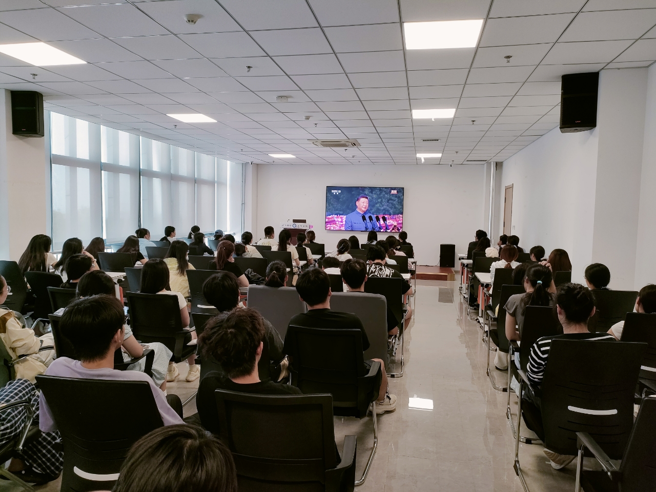 9月3日上午9:00,纪念中国人民抗日战争暨世界反法西斯战争胜利80周年阅兵在北京天安门广场隆重举行,公司组织师生分别在D301、D411会议室集体观看纪念大会直播,共同见证这一庄严肃穆的历史时刻。同时,对不能参加集体观看的师生,要求自行通过“中央广播电视总台”“新华网”等媒体平台进行观看。此次集中观看活动,师生参加人数众多,现场气氛庄重热烈,大家都沉浸在阅兵的激情昂扬和振奋人心的强大氛围中。