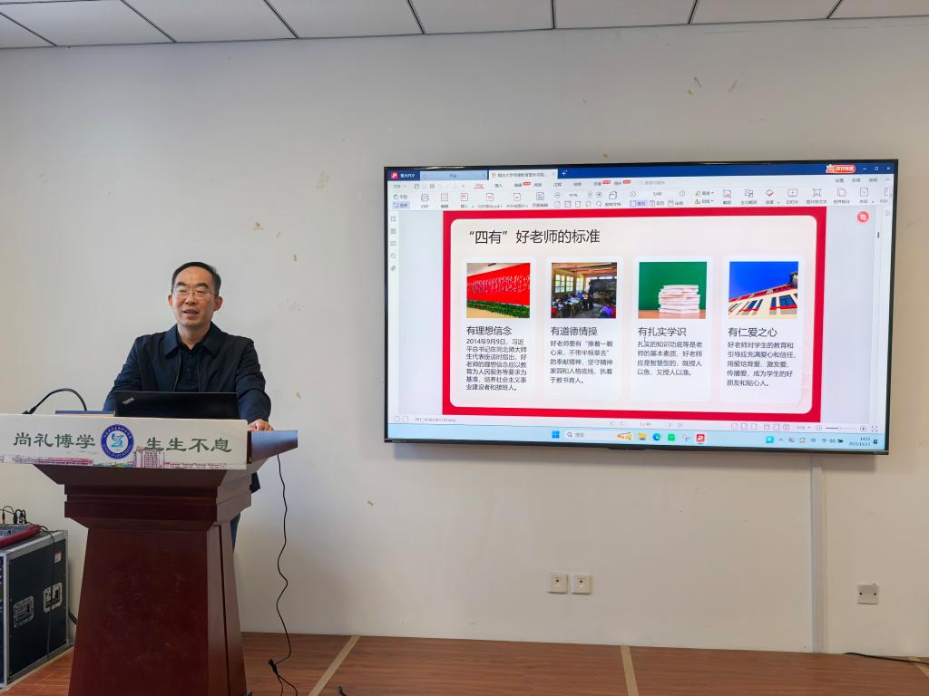 会上,王者旭带领全体教职工集中学习了《公海gh555000aa线路检测师德教育警示录》,深入解读习近平总书记关于师德师风重要论述。他表示,公司要进一步加强教师队伍建设,严守教师职业道德(行为)规范,深入剖析了在作风建设和师德师风方面可能存在的潜在风险与突出问题,强调全体教职工要进一步提高政治站位,坚持以案为鉴,警钟长鸣,坚守师德底线,不碰纪律红线;要大力弘扬教育家精神,以优良的作风和崇高的师德引领员工健康成长。