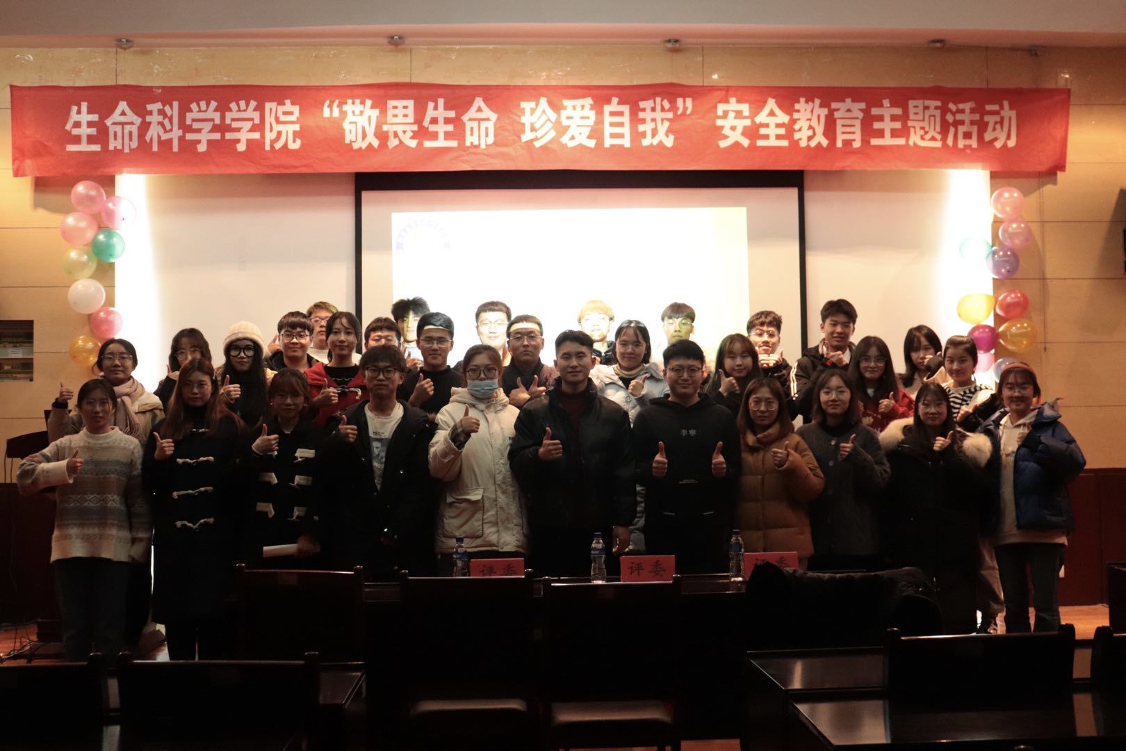 为了提高同学们的安全意识,加强自我防范,对此生科院公司举办了“敬畏生命,珍爱自我”安全教育主题展演竞赛。11月29日晚作品展演在化东举办,19级辅导员吕泽毅,研究生辅导员安兴爽出席此次活动。