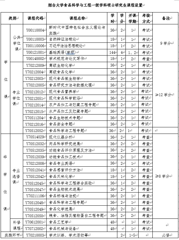 (一)课程设置见《公海gh555000aa线路检测食品科学与工程专业硕士研究生课程设置》(附后)